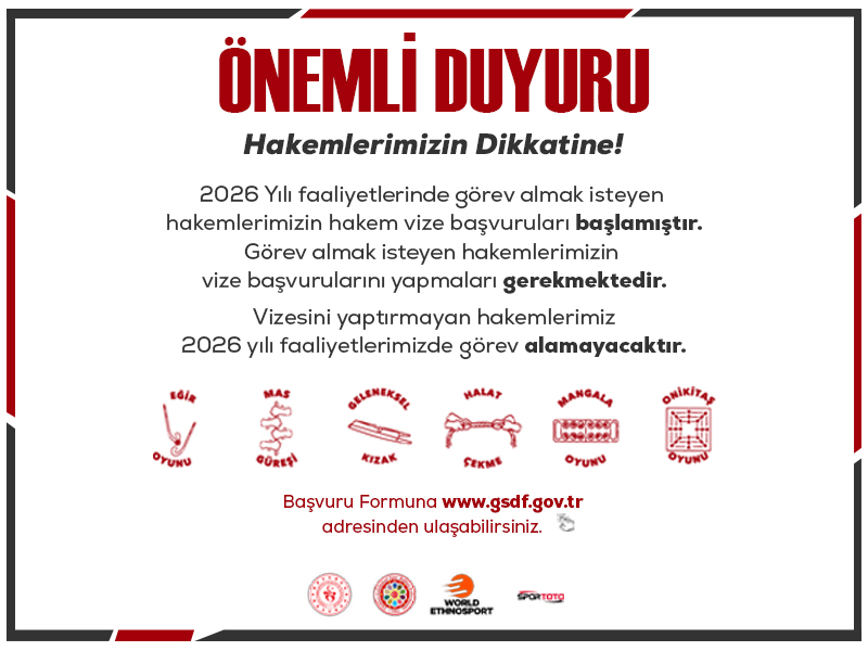 branş faaliyetlerinde görev alacak hakemlerimizin, 2026 yılı VİZE işlemlerini tamamlamaları gerekmektedir.