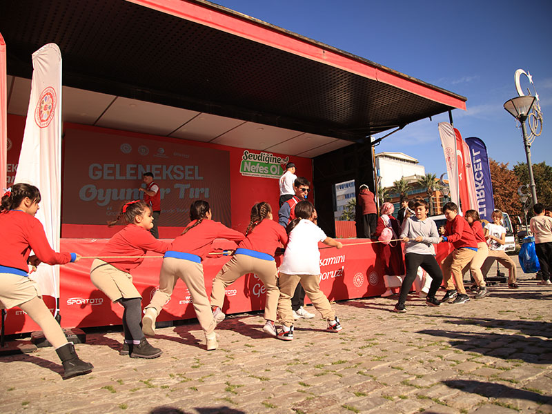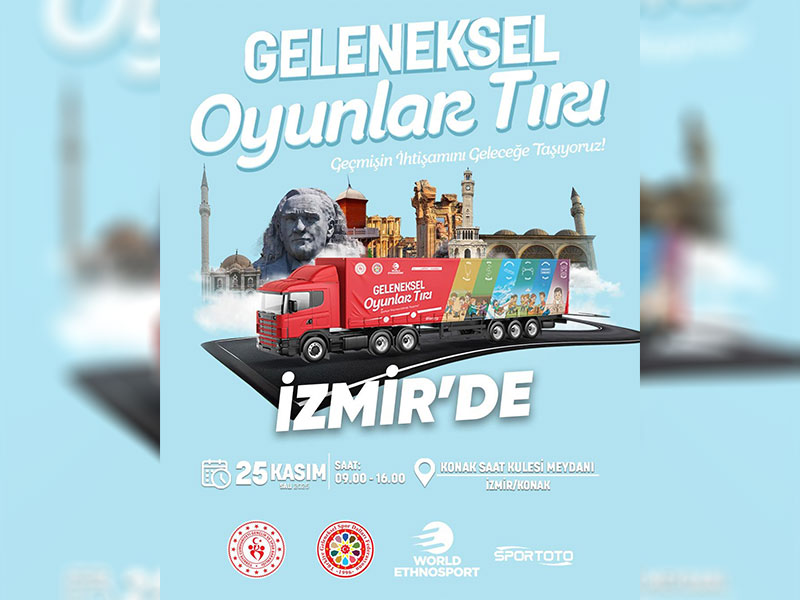 25 Kasım’da İzmir Konak Saat Kulesi’nin önünde kurulan Geleneksel Oyunlar Tırı, İzmirlileri kültürel mirasımızın izleriyle buluşturdu. Gün boyu devam eden etkinlikte, geleneksel oyunlarımızı gelecek nesillere aktarma ve yaşatma amacıyla oyun dolu anlar yaşandı. Çocuktan yetişkine 1200 katılımcı, oyunları deneyimleyerek unutulmaz anılar biriktirdi.