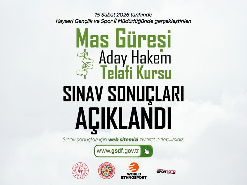 Kayseri İl Gençlik ve Spor Müdürlüğü’nde gerçekleştirilen Mas Güreşi Aday Hakem Telafi Kursu Sınav Sonuçları aşağıda listelenmektedir.