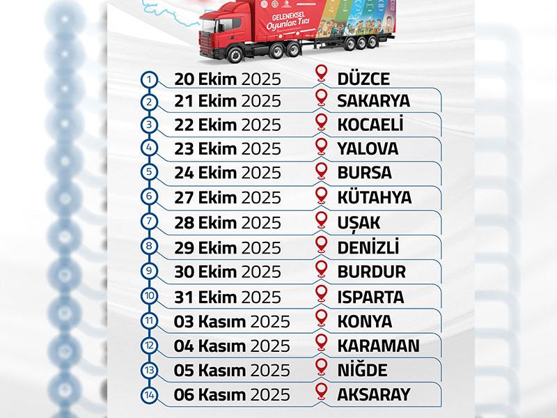 Şu ana kadar 44 ilde Geleneksel Oyunlar Tırı programımızı 14 deneyim istasyonumuz, 30 personelimiz ve 108. 770 katılımcımızla tamamlamış bulunmaktayız. Amacımız, 81 ilde ‘bir tır dolusu mutlulukla’ yediden yetmişe oynamak ve kültürel mirasımızı geleceğin mirasçılarına aktarmaktır.