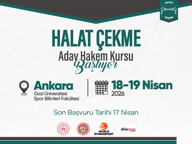 Halat Çekme Aday Hakem Kursu, 18/19 Nisan 2026 tarihinde Ankara Gazi Üniversitesi Spor Bilimleri Fakültesinde yapılacaktır. Söz konusu kursa katılacaklarda aranacak şartlar, istenilen belgeler ve kurs programı aşağıdadır.